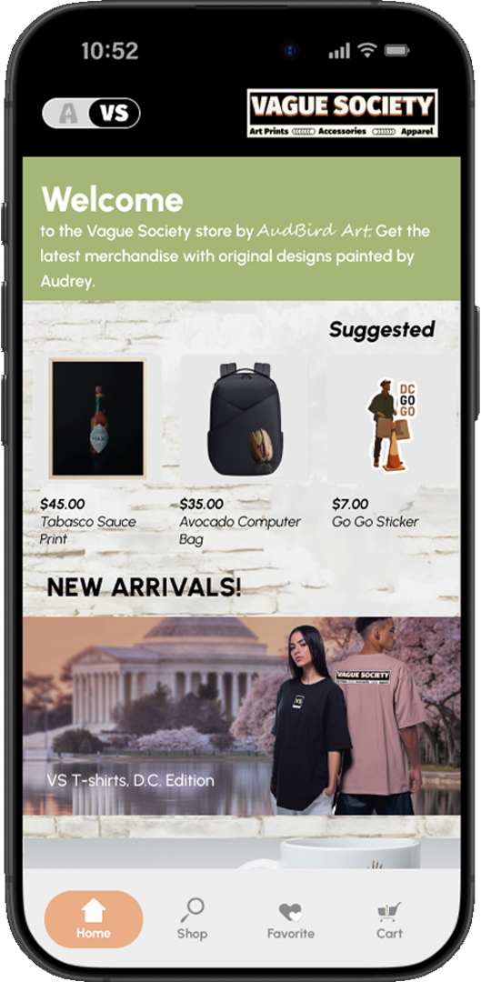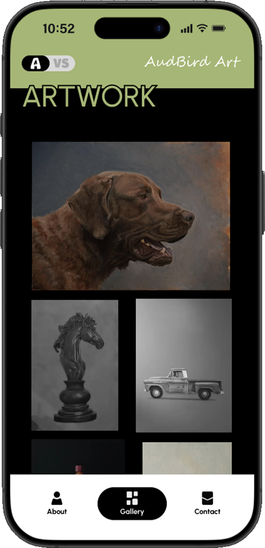 This app was a project to help painter Audrey to visualize a portfolio that could also be an online store were customers can either reach for a commission painting and/or purchase merchandise from their store.